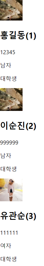import React from 'react'; class Customer extends React.Component { render() { return ( <div> <CustomerProfile id={this.props.id} image={this.props.image} name={this.props.name}/> <CustomerInfo birthday={this.props.birthday} gender={this.props.gender} job={this.props.job}/> </div> ) } } class CustomerProfile extends React.Component { render() { return ( <div> <img src={this.props.image} alt="profile"/> <h2>{this.props.name}({this.props.id})</h2> </div> ) } } class CustomerInfo extends React.Component { render(){ return( <div> <p>{this.props.birthday}</p> <p>{this.props.gender}</p> <p>{this.props.job}</p> </div> ) } } export default Customer;결과