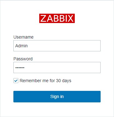 Username: Admin, Password: zabbix 입력후 로그인 합니다.