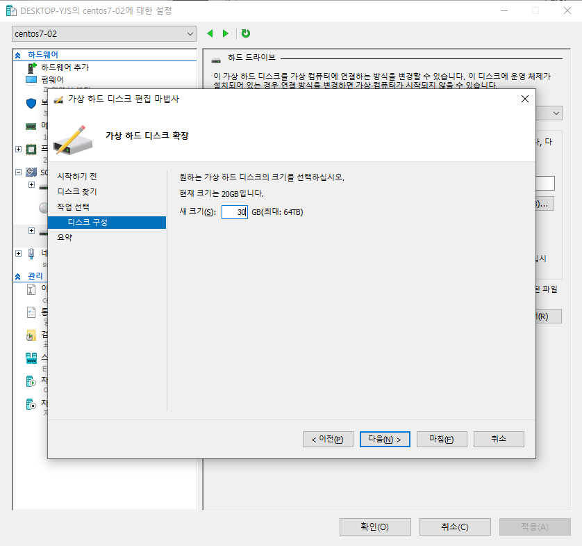 이번 시간에는 바로전 포스트(https://yeajs.tistory.com/29?category=933210)에서 만든 디스크를 확장(20G->30G) 후 LVM에 추가하는 방법을 알아보겠습니다.